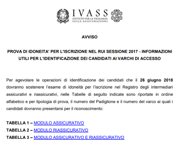 L’IVASS ha appena comunicato che la prova si svolgerà presso i Padiglioni 7 e 8 della Nuova Fiera di Roma. Qui potete scaricare l’avviso ufficiale sul sito dell’IVASS.