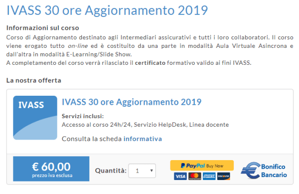 Abbiamo avviato già da alcuni anni una collaborazione con una primaria società di formazione assicurativa, la Atoma, per offrire a tutti coloro che ci seguono il Corso a distanza di 15 o 30 ore valido ai fini dell’Aggiornamento Professionale Obbligatorio annuale (Reg. ISVAP 5/2006) ad un prezzo imbattibile di € 40 + iva per le 15 ore e € 60 + iva per le 30 ore.