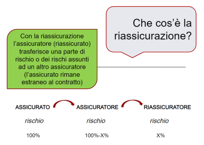 La riassicurazione è uno strumento di cui si servono le compagnie di assicurazione per assicurarsi a loro volta. In poche parole la riassicurazione è l’assicurazione sull’assicurazione e serve a proteggere la solvibilità delle compagnie assicuratrici e nel contempo a provvedere al reperimento di capacità supplementare per far fronte a rischi eccezionali o di particolare complessità.