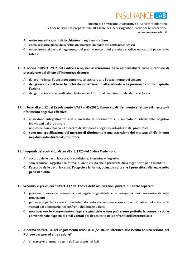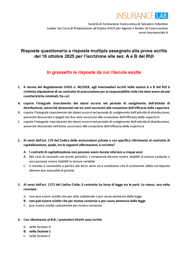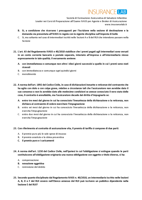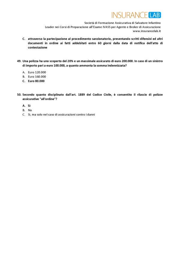 - Preparazione di Qualità per Professionisti di Successo: Il tuo obiettivo è solo superare l’esame, il nostro è anche avere un agente e un broker preparati per eccellere. Non rimanere in attesa della fortuna non perdere tempo in tentativi. Preparati con Insurance lab e avrai gli strumenti per diventare un Agente e Broker professionista di qualità, che si distingua per competenza e professionalità nel mercato.