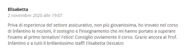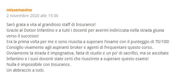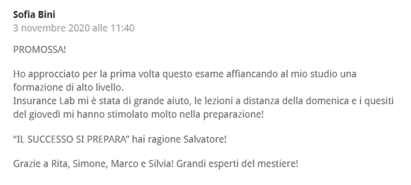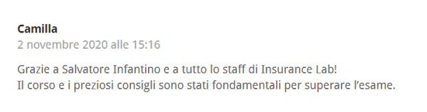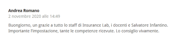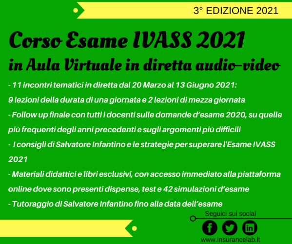 Per informazioni sui nostri prossimi corsi online e in aula 2021 a Roma, Milano e Bologna potete contattarci all’indirizzo e-mail info@insurancelab.it o al 392 93 23 267 (anche Whatsapp).