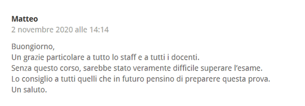 trovate un attestato di superamento dell’esame che suggeriamo di scaricare. L’area riservata sarà infatti accessibile per poche settimane, dopo di che verrà chiusa e non sarà più possibile riaccedere. Suggeriamo quindi in generale di scaricare tutta la documentazione del vostro esame appena possibile.