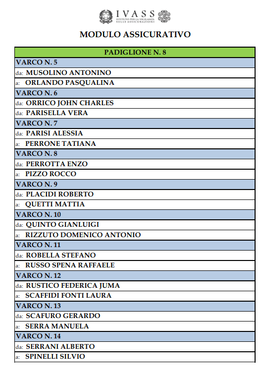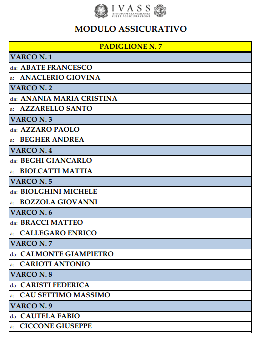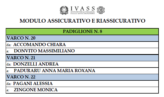 Al fine di agevolare l’ingresso dei candidati nei padiglioni sono state pubblicate le tabelle indicanti la suddivisione dei varchi di riconoscimento dei candidati per cognome e tipologia di prova (modulo assicurativo/riassicurativo/assicurativo e riassicurativo).