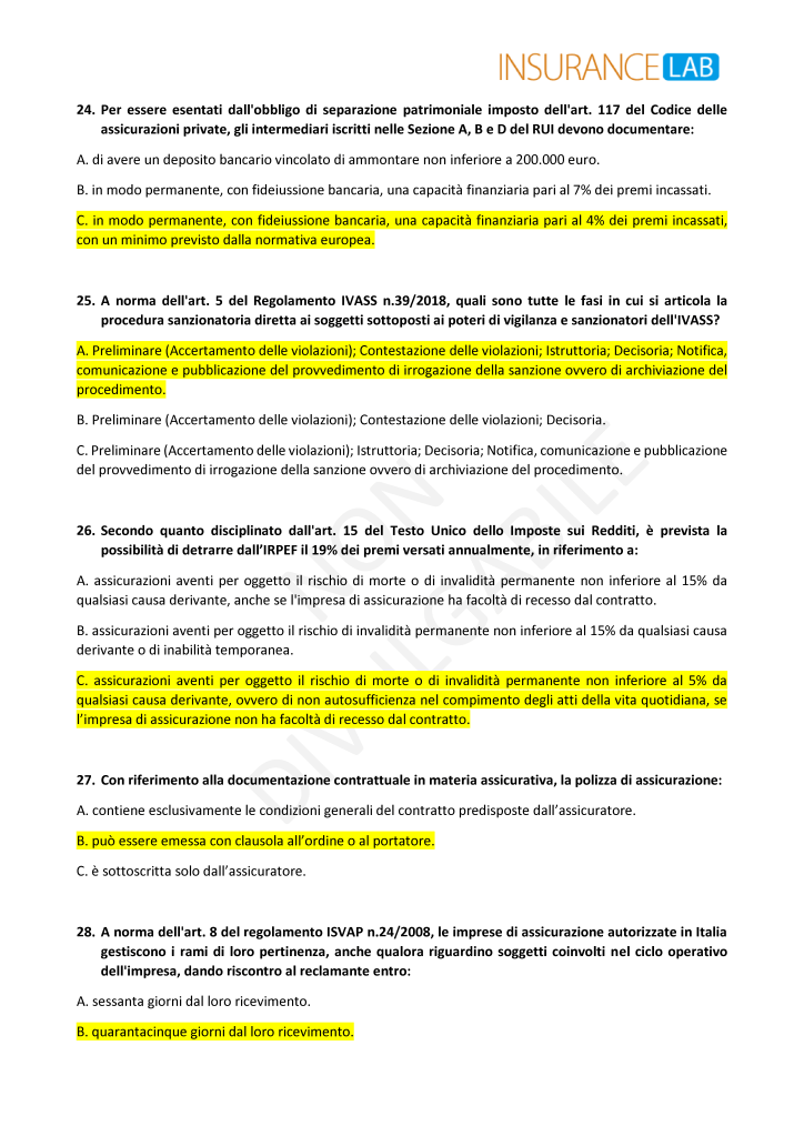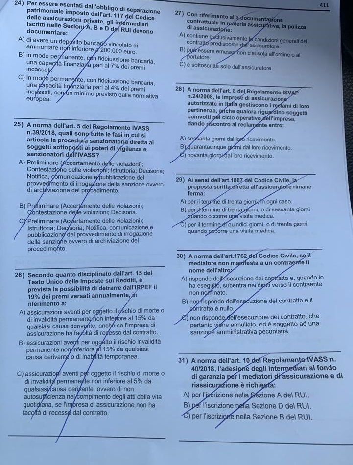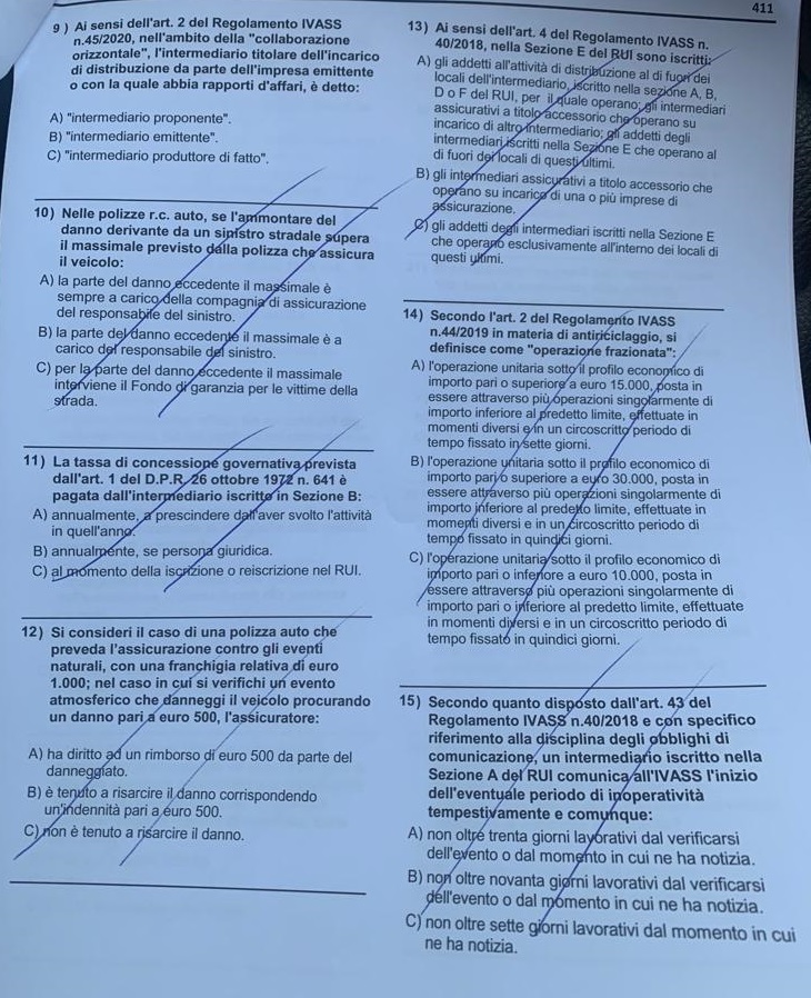 – Modulo assicurativo per l’esercizio dell’attività di intermediazione assicurativa (l’esame verte sulle materie di cui all’allegato 5 – Sezione 1, del Regolamento IVASS n. 40 del 2 agosto 2018);