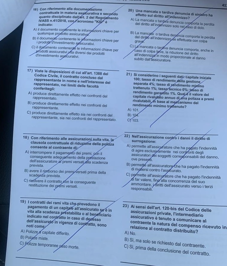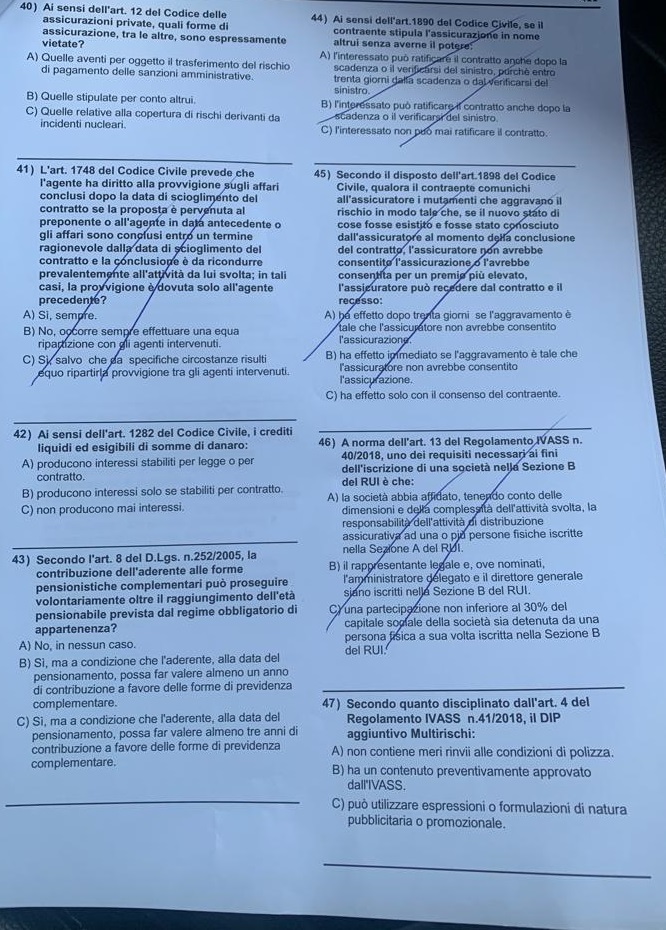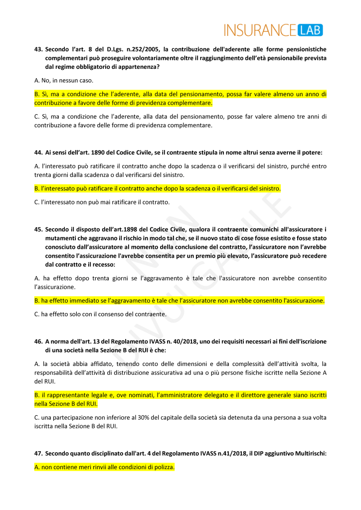Si potrà rimanere in sez. E anche dopo aver superato l’esame e ci si potrà iscrivere nella sez. A o B anche in un momento successivo (appena ad esempio sarà possibile ottenere un mandato agenziale o si decida di avviare l’attività di broker assicurativo), senza dover risostenere l’esame.